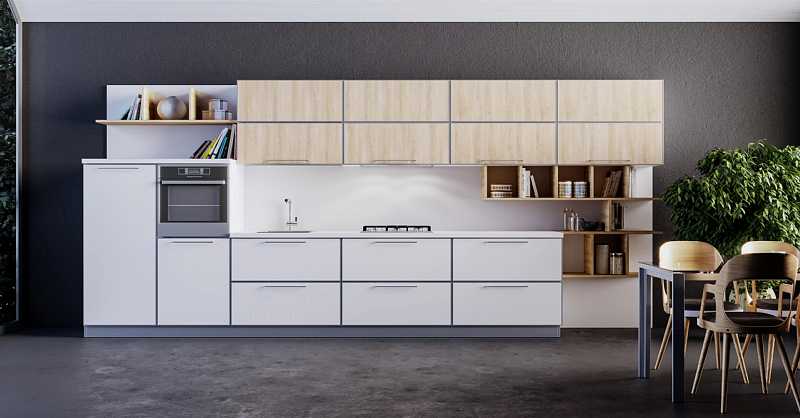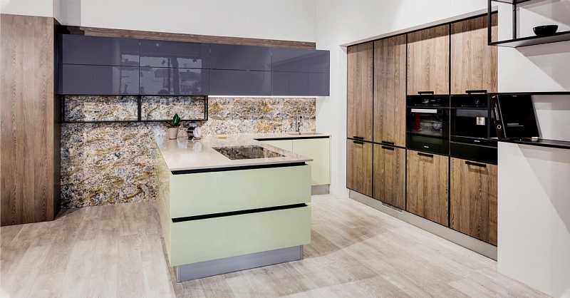 В качестве фасадов Acapella используется HPL-пластик в алюминиевой или черной алюминиевой рамке с разнообразными выбором декоров: деревянные и каменные декоры, матовые пластики, а также пластики Soft touch.