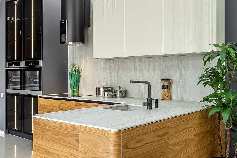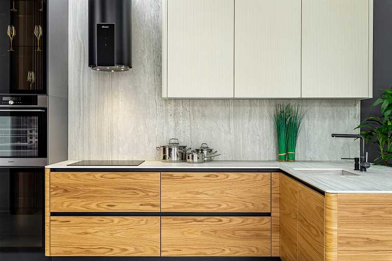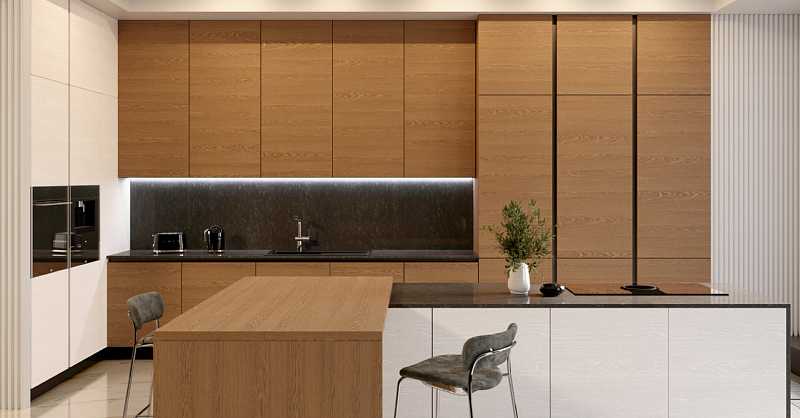 Выраженный горизонтальный рисунок шпона натурального дуба расширяют пространство кухни. Богатый выбор оттенков, включая эксклюзивные морилки позволят создавать интерьеры на любой вкус и не идти на компромисс.