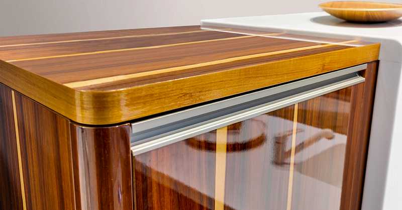 Натуральный шпон экзотической породы дерева покрыт прозрачным лаком, который дает необходимую защиту благородному покрытию, позволяя при этом насладиться