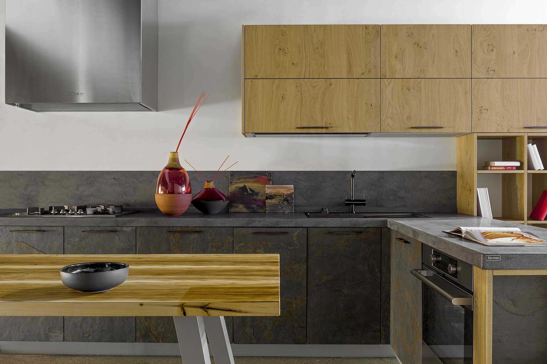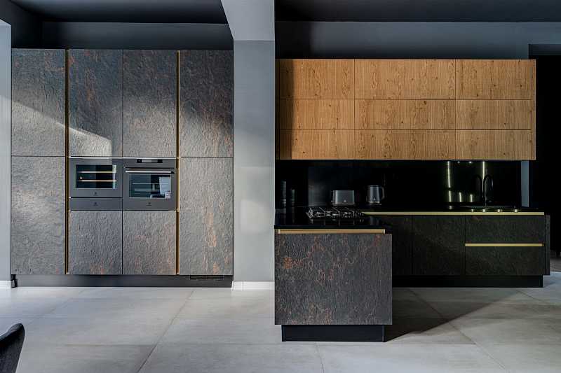 Используя природные материалы и самые современные технологии мы создавали для Вас кухню PIERRA. Текстура натурального дуба “рустик”, бетон, натуральный камень — все эти материалы создают яркий, брутальный образ PIERRA.