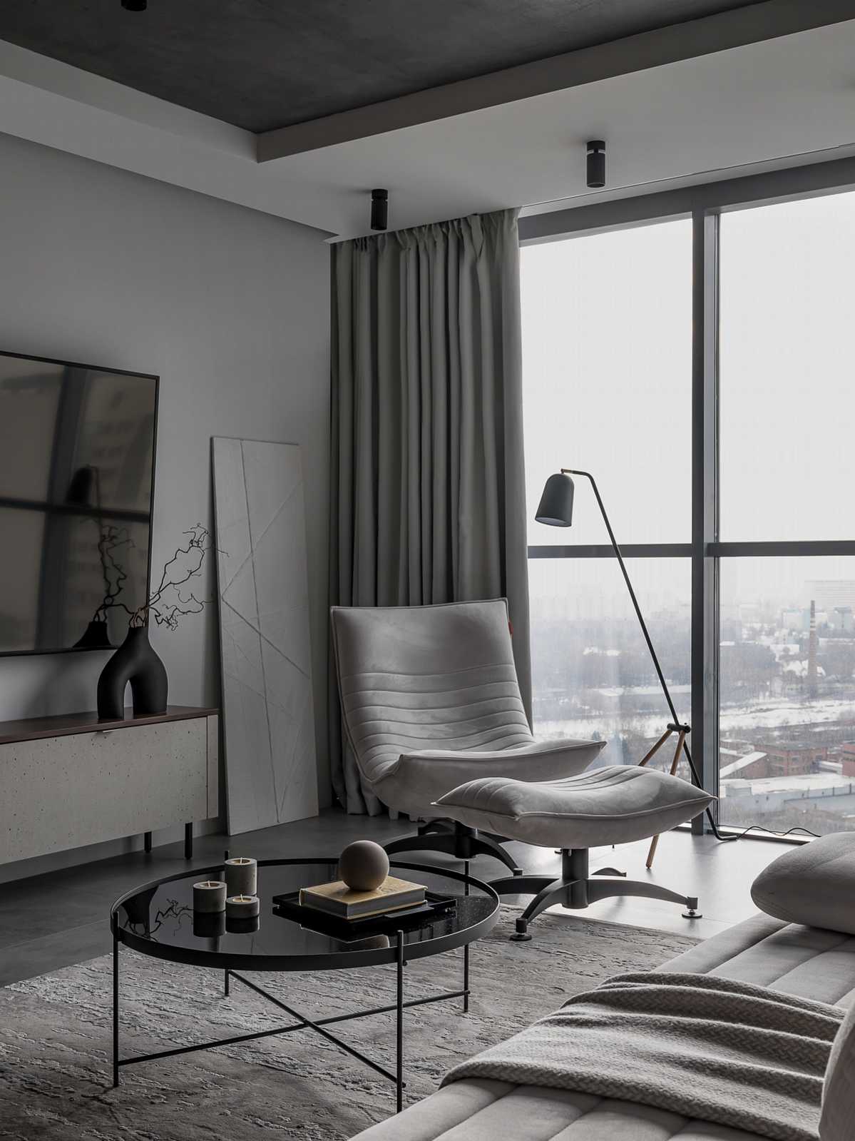 Цвет, или скорее, его отсутствие, помог создать интерьер, который никогда не наскучит, его легко можно изменить в зависимости от настроения. «Выбранная палитра служит превосходной основой для любых колористических экспериментов», — подчеркивает дизайнер.